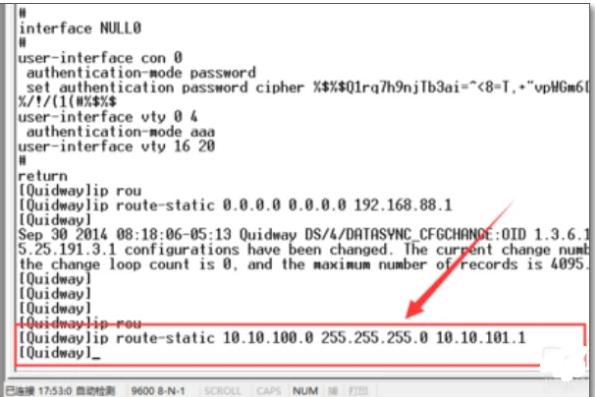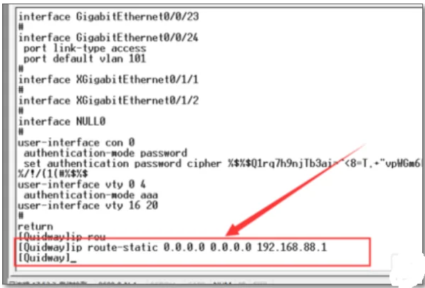 2.首先确认当前配置中是否有静态路由,